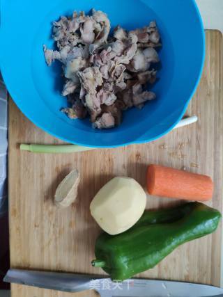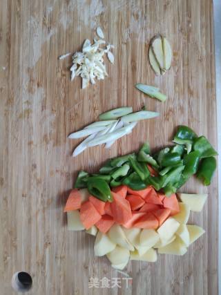 胡萝卜土豆甜椒切块 ,葱姜切片 蒜切沫。