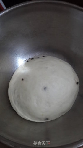 步骤2、发酵至两倍大,将面团分成均匀的两份滚圆静止20分钟左右
