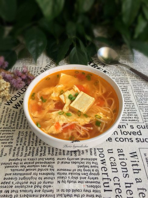 西红柿,豆腐,鸡蛋,金针菇,香葱,鸡精