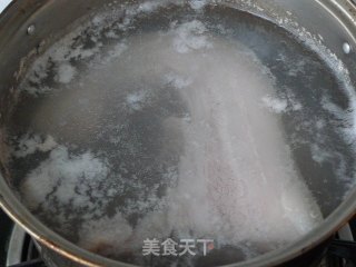 步骤1、将五花肉洗净。放入凉水,大火滚开后煮5分钟。