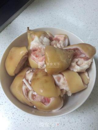 步骤1、新鲜猪蹄,用小刀刮洗净。(买时已经帮砍成小件)