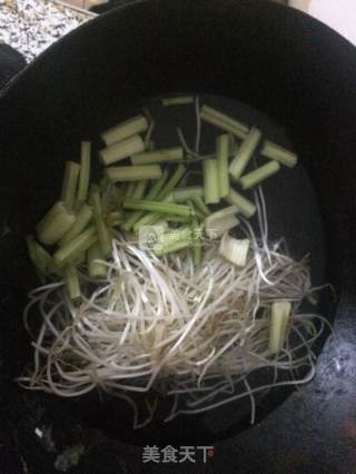 步骤2、先把芹菜。豆芽 土豆用水烫熟,捞出沥干