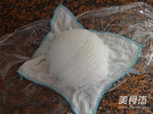 步骤2、面团先盖上保鲜膜,再盖上湿布静置30分钟