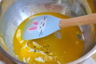 步骤2、蛋黄里加入橄榄油,混合均匀后,加入牛奶。