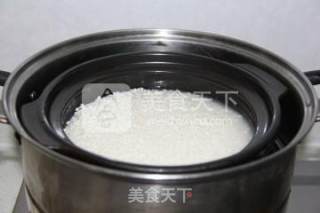 步骤2、糯米和水的比例为2:1,放蒸锅中蒸熟