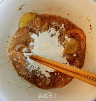配方:鸡脯肉,干淀粉,酱油,料酒