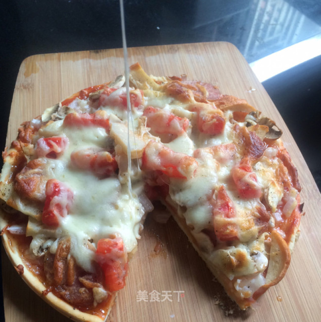 配方:高筋面粉,披萨酱,青椒,西红柿