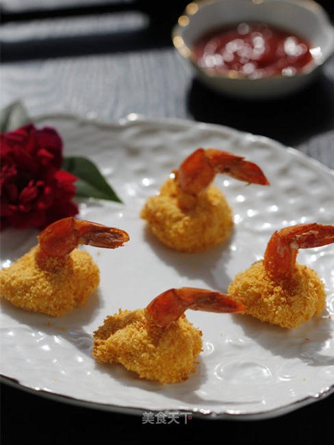 大虾,鸡蛋,姜丝,生粉,面包糠,番茄酱