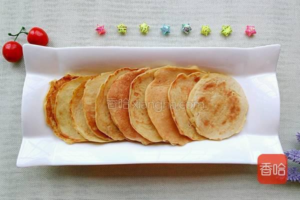 香蕉饼微甜,喜欢吃甜的亲可以适量放一些白糖,或者在饼上面浇一些蜂蜜。