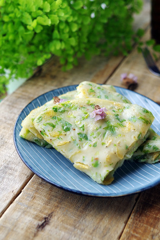 2、冷锅冷油,倒入面糊,小火煎即可;