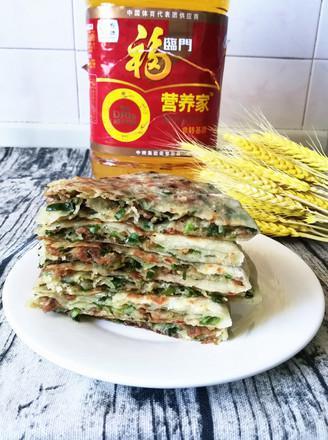 4.烙肉饼时锅里不用放油,烙的过程中,馅里的油会自然渗出来,饼皮烙完会又香又酥的,而且吃着不腻。