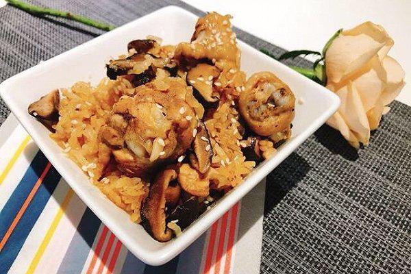 鸡腿,干香菇,大米,葱姜,白芝麻,料酒