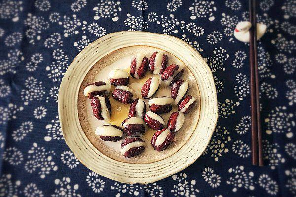里面,蒸熟之后糯米会膨胀。3.上锅每个枣子之间距离大一点,不然会粘到一起4.热着吃,口感比较软粘,冷吃,有嚼劲。两种都好吃