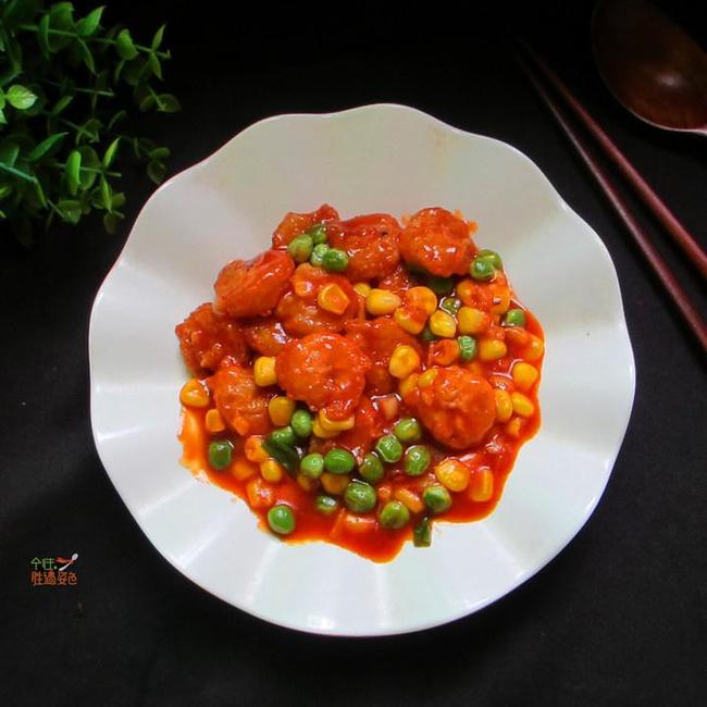 配方:虾仁,面包糠,甜豆仁,番茄沙司