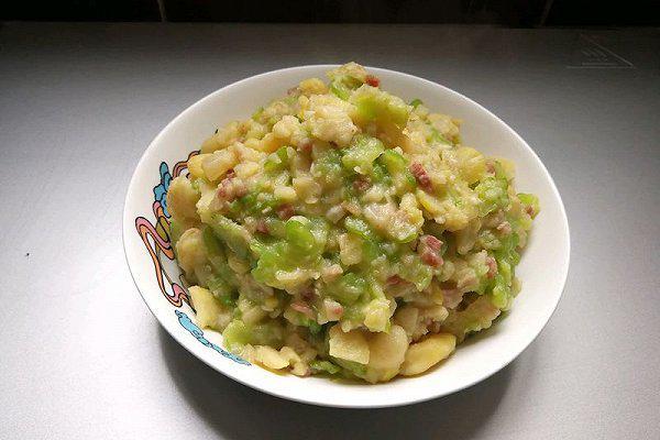 已经有咸味。4.炒的过程中,如果太干,加上一点开水,稍微稀一点比较好。5.炒火腿用小火,不然容易发苦。
