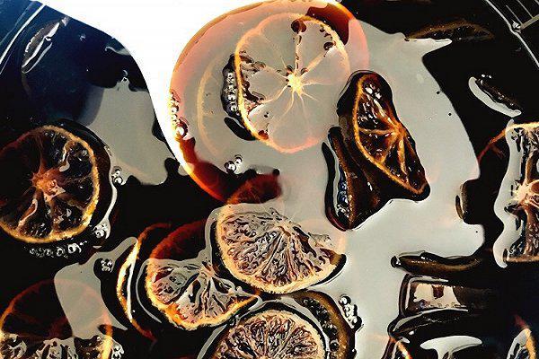 柠檬用盐水浸泡15分钟,用盐搓洗一下表皮。