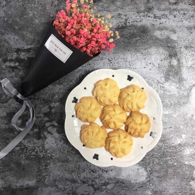 食材先来个合影,这个量是做原味和红茶两份曲奇的,42升烤箱,可以烤三盘,可以根据自己的烤箱和需求调整方子的量