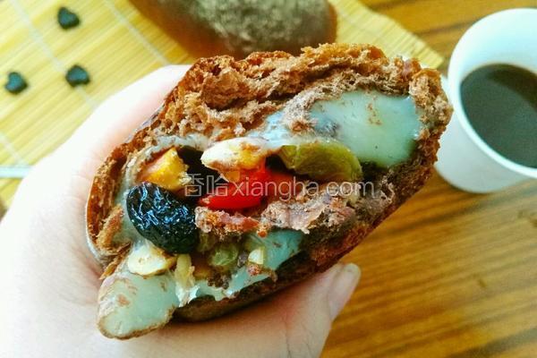 4.软欧面包一般为较高成分面包,配方中使用的糖、油脂皆为面粉量的10%以上,馅料应为面团重量20%以上,组织较为柔软,可应用各式馅料来做成最终之烘焙品。陷料可随意搭配,核桃,花生,蔓越莓都可以,陷料中的干果蜜饯总共100克!我还做过巧克力酱的,也很好吃哦,这款本身就是可可的,所以巧克力就不放了,做原味软欧可以放哦。