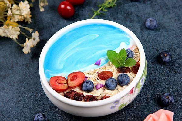火龙果,香蕉,蓝莓,浓稠酸奶,淡奶油,蓝藻粉