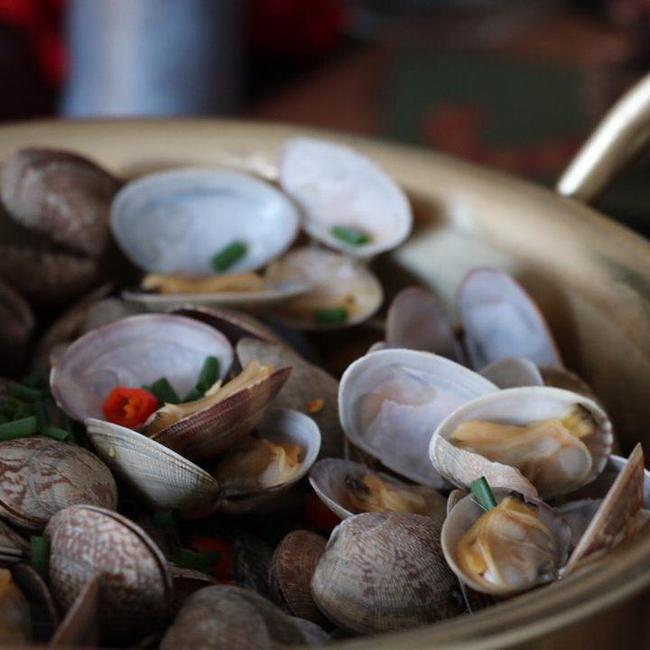 配方:花蛤,蒜粒,干辣椒,无盐黄油