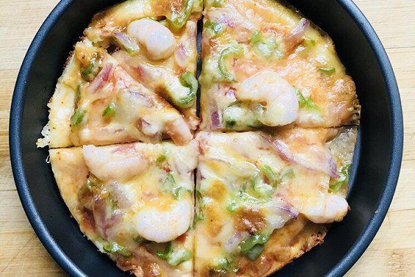 披萨底,虾仁,青椒,洋葱,芝士