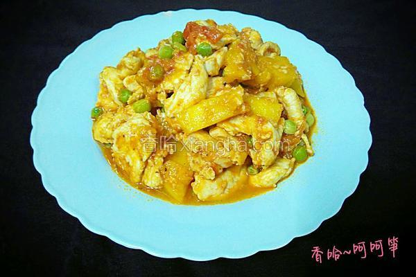 豌豆粒,鸡胸脯肉,蒜头,番茄,菠萝,鸡蛋