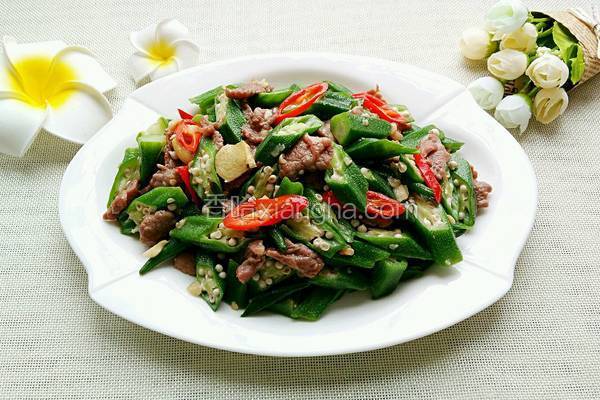 醋溜肉片黄秋葵