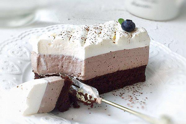 Tips:1、 蛋糕体的制作可以是海绵蛋糕,也可以根据自己的喜好做成磅蛋糕or戚风蛋糕,都可以的喔2、 可可粉一定要用热水的哦,冷水的话冲不开可可粉,会有颗粒,咖啡粉亦是如此;此外,还要注意的就是冲好的咖啡一定要过滤!过滤!过滤!不然的话蛋糕的口感不会细腻,有颗粒感,还会很苦3、 慕斯圈的底部一定要用锡纸,制作好的慕斯蛋糕表面要加盖保鲜膜再放入冰箱冷藏,避免冰箱中的水低落在蛋糕上影响美观4、 蛋糕的装饰可以随自己的喜好进行装饰。5、 食谱用量及烤箱温度仅供参考,请根据自家的面粉,烤箱品牌酌情使用