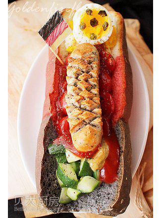 面团发酵时,三种颜色需要隔开,以免混色不好操作一包预拌粉约可做3~4个面包坯,可依喜好制作成适当的大小面包造型可依喜好变换!圆型汉堡或是餐包造型都很方便夹馅食用内馅夹料全依个人喜好,如不在乎色彩问题,建议可改德国酸菜搭配香肠,风味极好