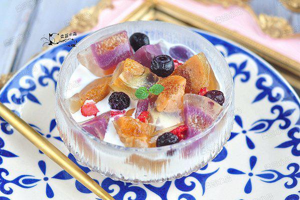 芋圆,牛奶,炼乳,草莓干,蓝莓