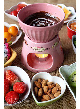可以稍微稀释巧克力成巧克力酱。3.最后的拉花是为了美观,如果嫌麻烦也可以省略。4.吃的时候小火锅下面放个蜡烛就好了,巧克力酱可以一直保持温度方便涮冰激凌和水果。