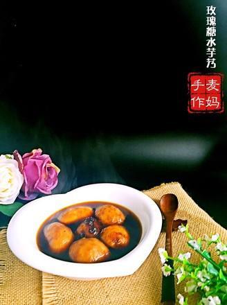 我的块状红糖不怎么甜的,所以加了玫瑰花酱味道刚好!自己调整 我记得我妈做糖水芋艿都是加碱水的,说是颜色好看还容易酥!我就加了点做广式月饼剩的枧水,网上搜的应该功