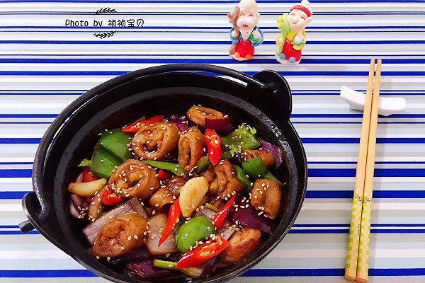 肥肠,圆葱,青椒,红辣椒,香菜,蚝油