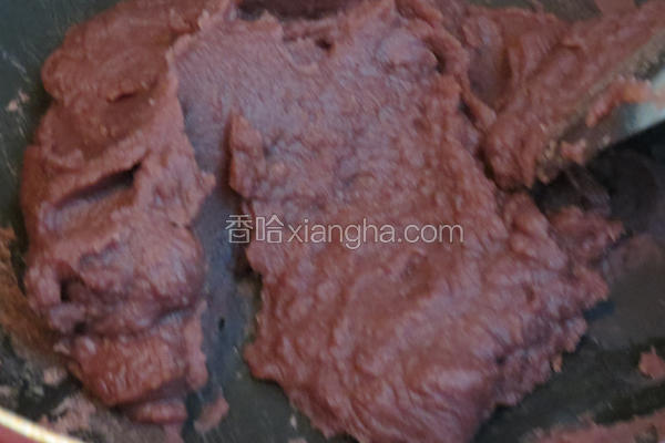 3、这是去皮的豆沙,我也是第一次做,发现真的很麻烦,其实不用去皮也一样好吃,我觉得根本没差,而且皮也很营养,就煮好直接下去边压边炒干就好了
