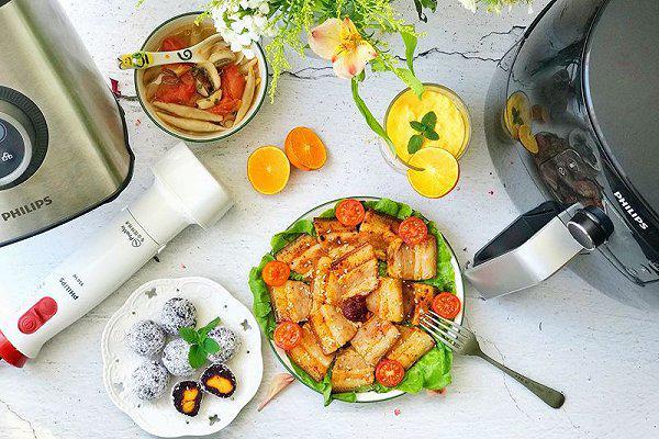 用飞利浦三剑客轻松做一顿宝宝及家人爱吃的减脂大餐,很简单有木有?特别是飞利浦新一代空气炸锅,Twin TurboStar双层高速空气循环技术,加速强力热风循环,减少高达90%的油脂率;1.4kg超大容量加以双层架配件,大幅优化空间利用率;5种不同烹饪程序预设,可快捷完成煎、烤、炸、烘焙不同料理