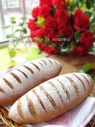 面包表面的面粉不要筛太厚,薄薄一层就可以了。