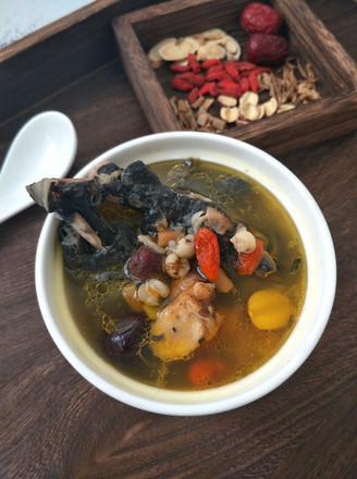 4、煲汤的时候会闻到浓郁的中药味道,不用担心,煲汤时间越长味道就越淡。最后炖好的汤中有淡淡的中药味道,一般人都可以接受,吃习惯了药膳会觉得是特别的香哦。