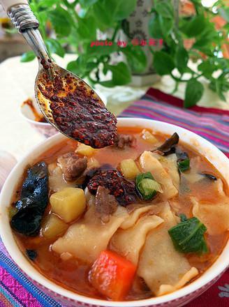 4、各种蔬菜不能加的太多,这样汤就宽了,揪片子就好吃了