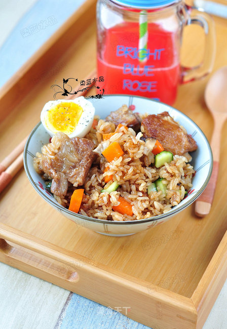 收汁后才会更香,这时候加入生米,要记得把握好焖米的水量,少放了饭容易夹生,放多了饭粒达不到粒粒分明的效果。 3. 炖完排骨后记得要把