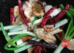 步骤8、翻炒使配料皆挂上焦糖,大火爆香,加入十三香和花椒粉,至闻到配料香叶即可。