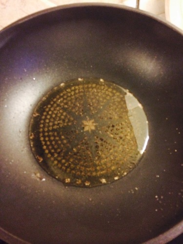 步骤6、 锅中放入油烧热,随后浇在牛百叶上