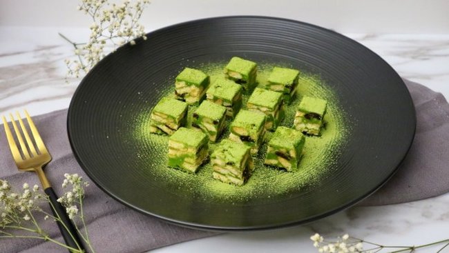 等待糖饼凉却。把雪花粉(奶粉+抹茶粉)混合均匀备用。