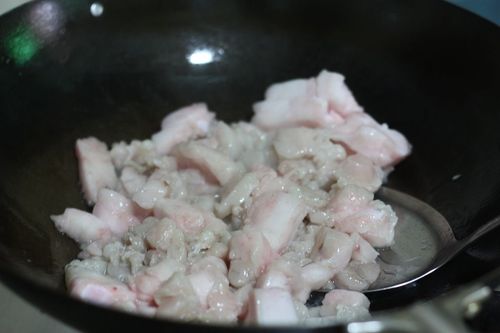 步骤1、 将猪板油切小块,用清水洗净,放在炒锅里用小火熬煮