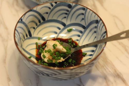 步骤3、 碗里放一勺猪油、生抽、白胡椒粉、葱粒在碗里