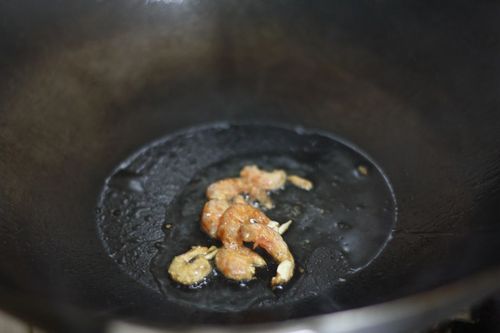 步骤4、 炒锅里放少许油,爆香海米
