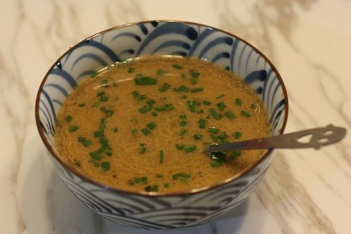 步骤6、 把煮好的高汤倒入放了调料的碗里