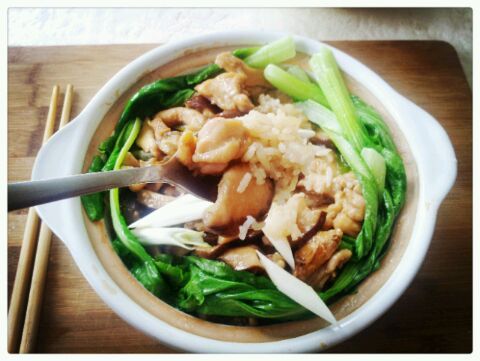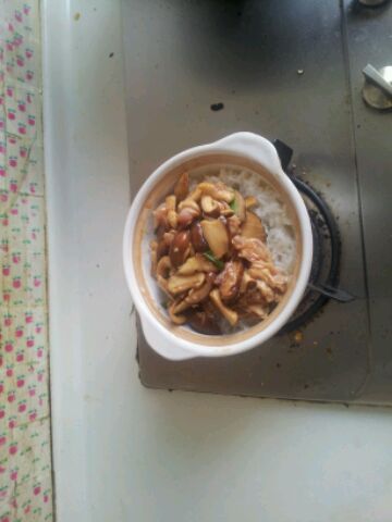 步骤9、 鸡肉香菇爽滑,米饭香糯。