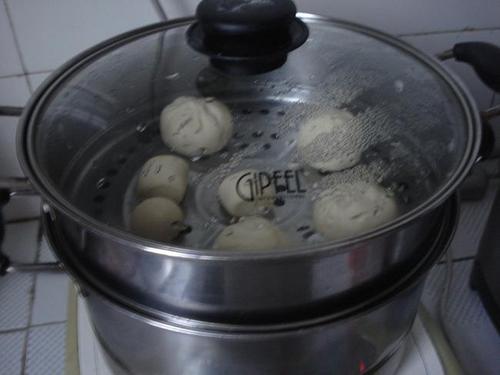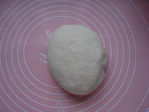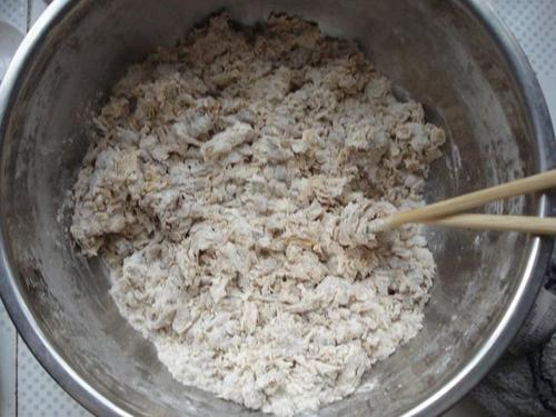 步骤2、 面粉加酵母,加水用筷子搅成絮状,用手揉成团;