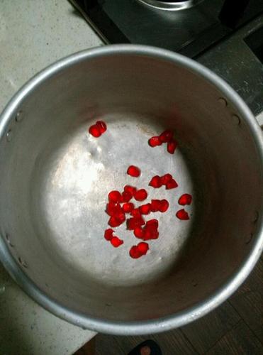 步骤1、 将16个QQ糖剪成二分之一的样子,放入锅中。