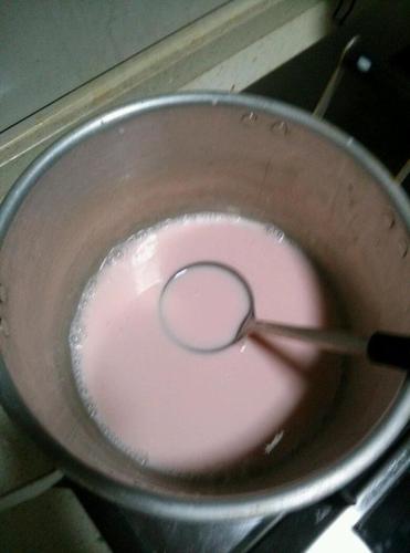 步骤2、 特别注意火候!!!只能是这么大,太大会浮起许多小渣子。那是牛奶凝结的样子,若是那样就失败了。而且一定要有耐心!!!